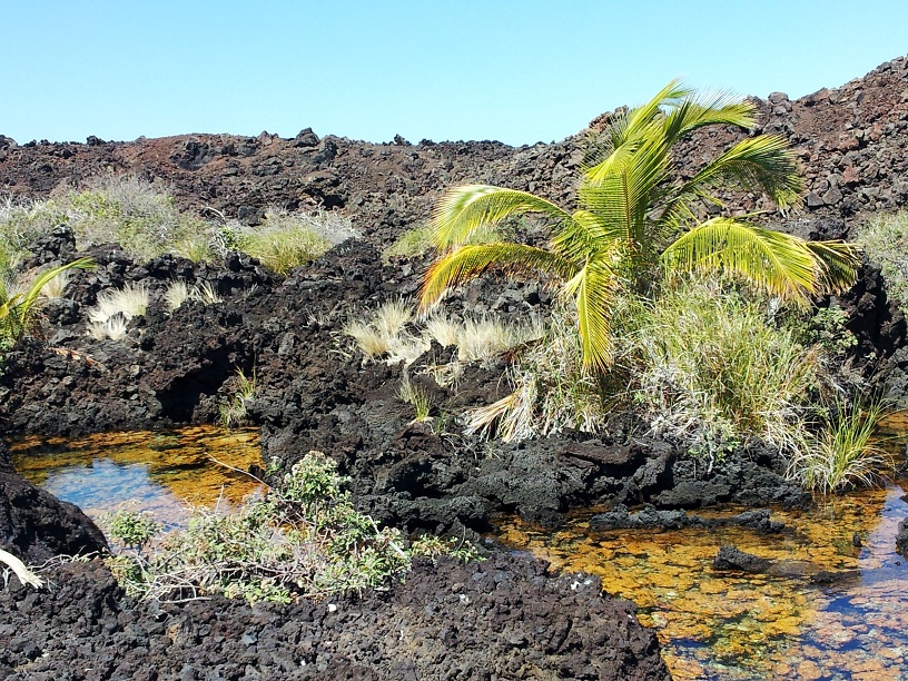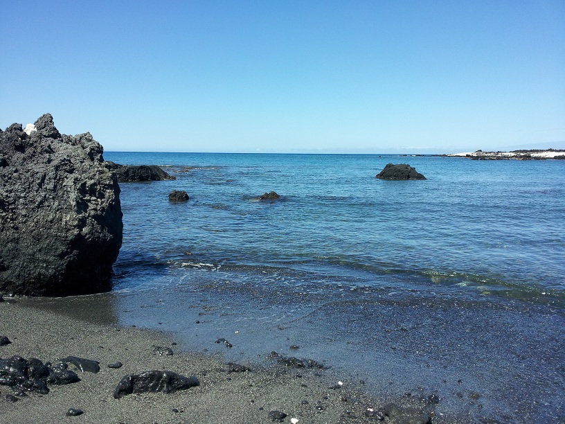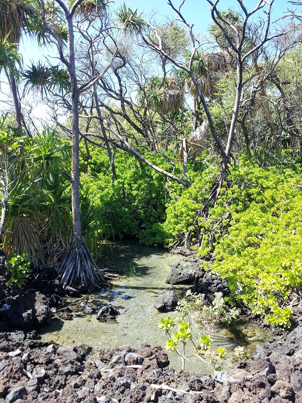 Today Tom and I leave our Kona abode and head to the Hilo side of the island. Since check in at the new place isn’t until late afternoon, we decided to go back to Kahului Bay. We hiked it once before but didn’t take the time to stop and snorkel or explore the tide pools and the pretty little oasis just off the trail about half way to the beach. So we decided the area deserved a more thorough inspection.