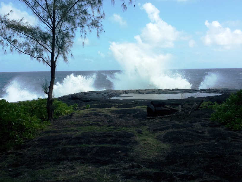 The last stop on our tour was to Black Sands National Park. For centuries this was a wonderful local treasure – a beautiful black sand beach with towering coconut palms where local families swam, surfed, picnicked and communed with nature. Then Mother Nature let loose and covered the area with a blanket of lava 60 feet deep and miles wide.