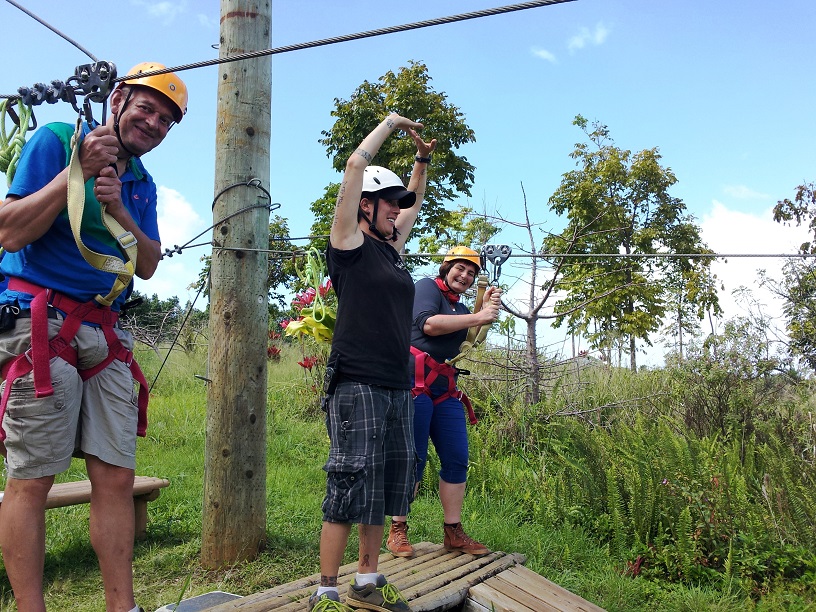 The zip lining was awesome and the team – Preston, Red, and Jen were terrific – funny, knowledgeable, and great. They pointed out plants,