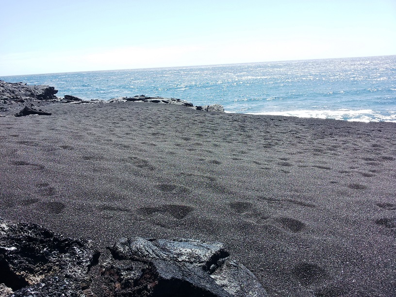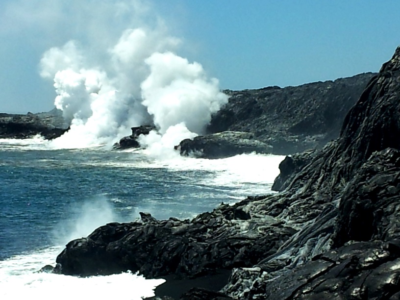 Today we did it! Tom really wanted to make it to the lava flow and today we did, but it about killed us. We started out at Kehena Black Sand Beach at 9:30 AM supplied with plenty of water, lunch and of course cameras. We had done part of the trail before and knew that it was going to be hard, but we were determined.