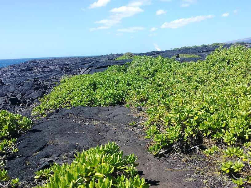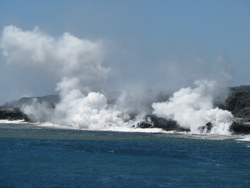 The hike weather was warm, but not too hot and we had a good tail wind to push us along so we made pretty good time going. The trail is well marked in the beginning, but the markers become fewer and farther between as you go. After a while we didn’t see any at all so had to make our own way with a bit of backtracking along the way. The trail is along the coast, however, so you can’t really get lost. Plus you can see the steam cloud which acts as a beacon as well as encouragement.