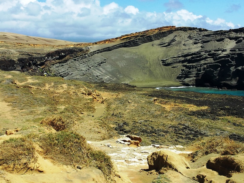 (By the way, the green sand is a result of a volcano involving olivine, also known as peridot, crystals. The olivine lava poured into the sea and exploded into olive green sand. Pretty cool, huh?)