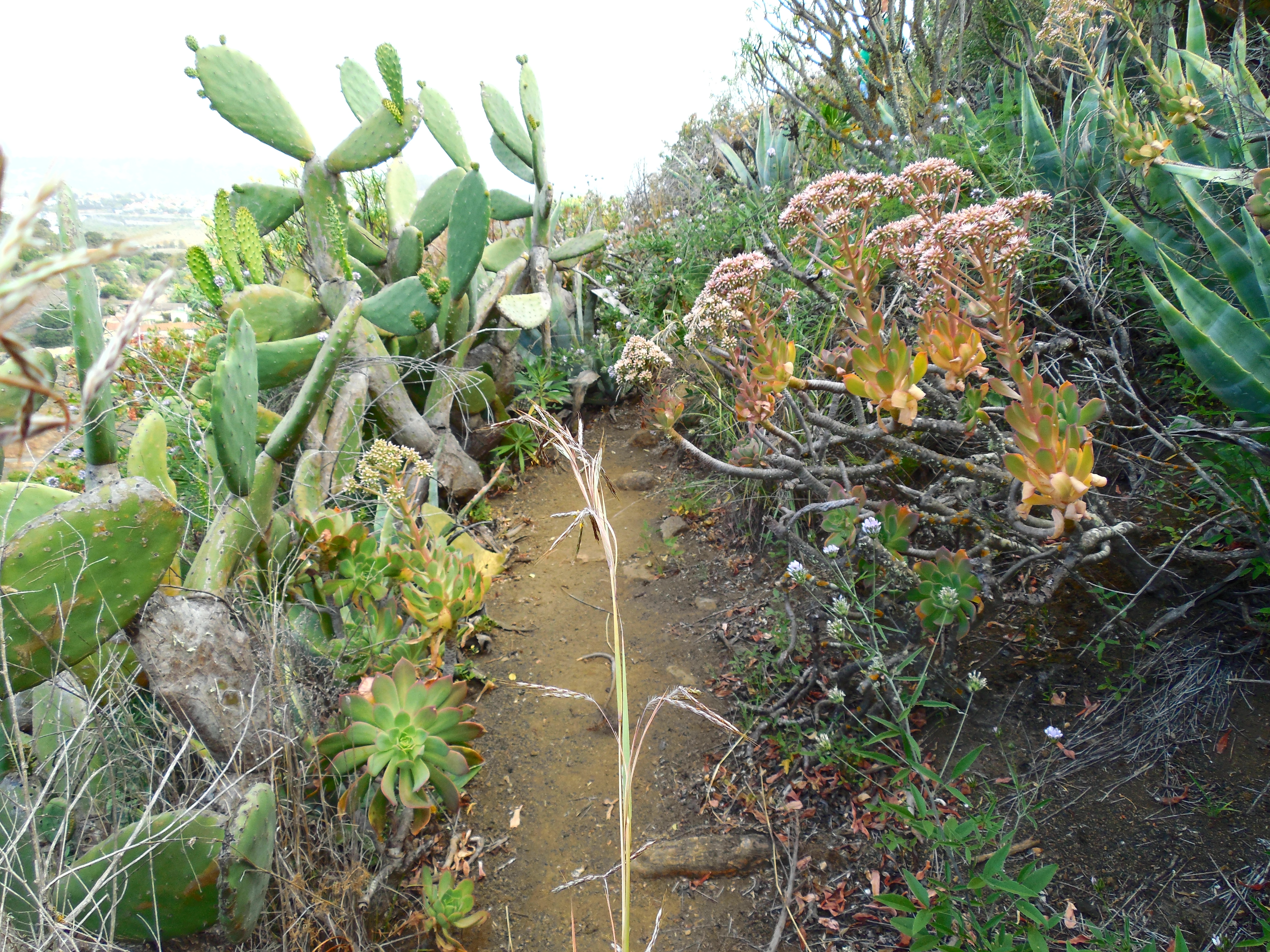 We started up a very narrow, steep path between giant prickly pear cactus, large pointy yucca, and wild geraniums.
