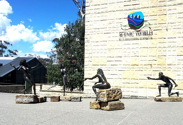 This is looking at the top of the train on the Railway.This is the SkywayThis is the line for the Cableway.The Three Sisters – I don’t know the legend behind the name.A sculpture of the Three Sisters.