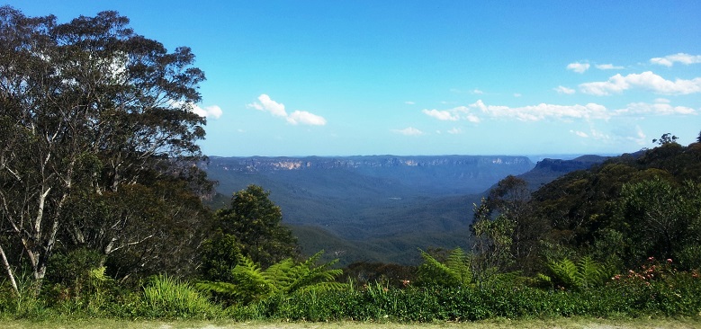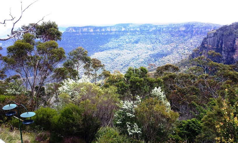 A two hour train ride took us through scenic hills, quaint little towns and frequently past very close trains. We ended up in the lovely hamlet of Katoomba nestled in the heart of the regal Blue Mountains 60 miles west of Sydney.