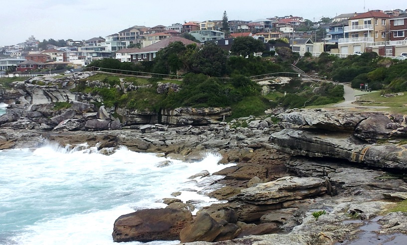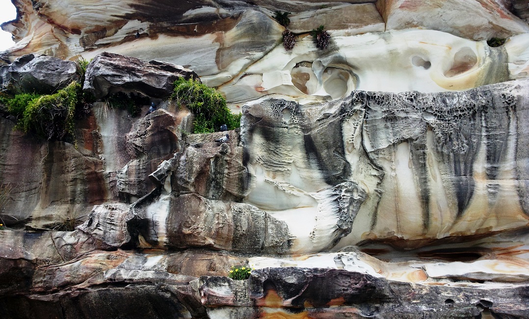 Bondi – what a lovely place to live.This walkway was built along the naturally sculpted sandstone cliffs.The sandstone makes a colorful medium for sculpting by wind and water.The white is the true color of the sandstone. Minerals, clay, and other rock add color to the mix.Magnificent