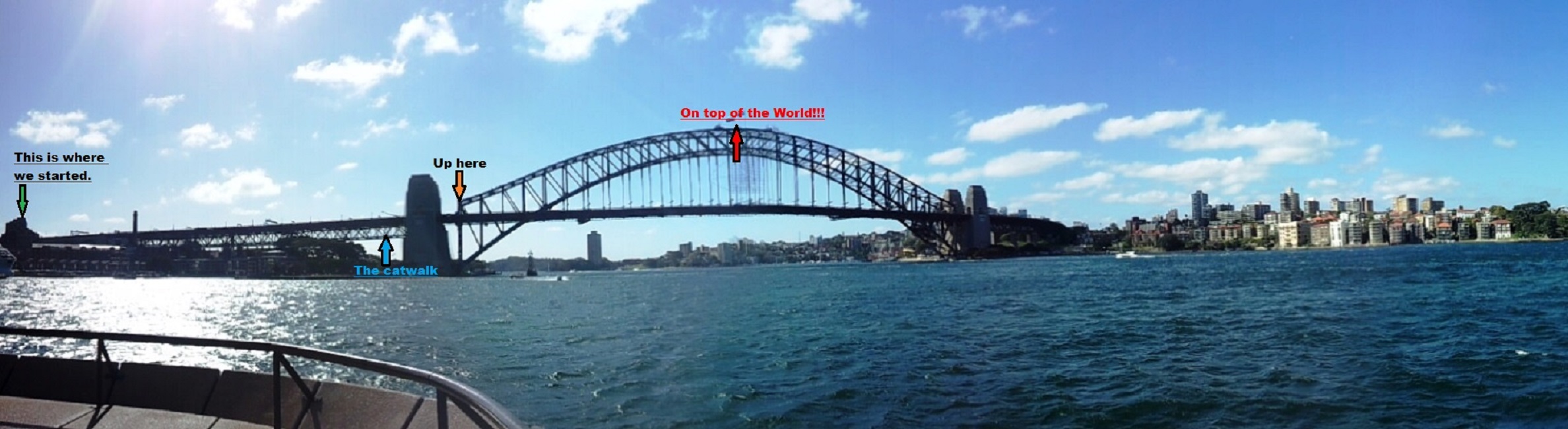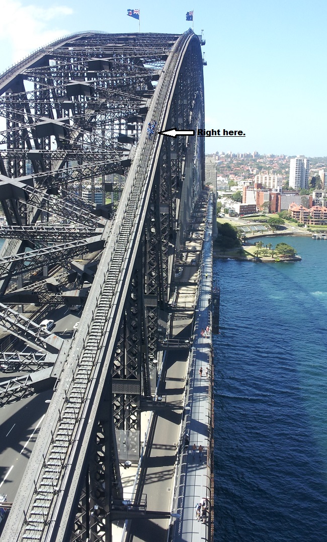 While pictures were being taken, we stood staring down at Sydney whirring below, wow. Pictures done we started the climb to the summit of the arch. Then more pictures and time just to soak-in the amazing panorama below.