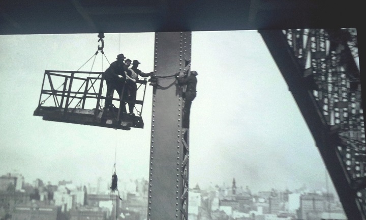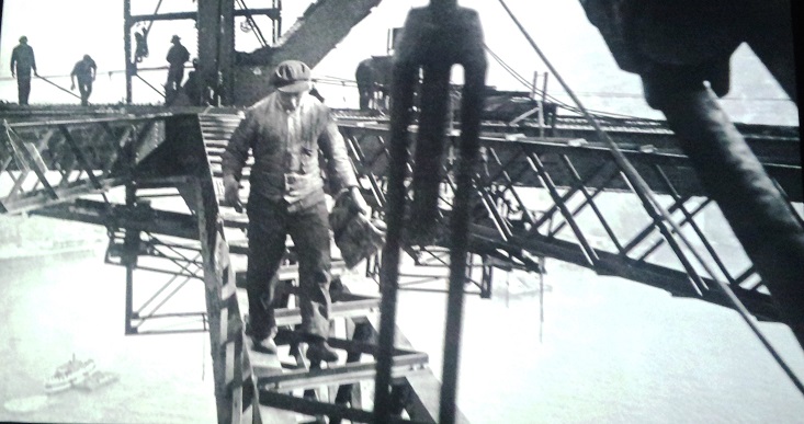 Watching a video of the guys walking around on narrow beams with no safety measures during the building of the bridge didn’t do anything to settle my nerves…