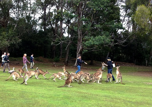 On Wednesday Tom and I had tickets to a concert at the Sydney Opera House (another bucket list check). We headed to the Quay for an early dinner in one of the dozens of restaurants overlooking the harbor. After dinner we made our way through the throngs of people waiting in line to see Jack Johnson who was performing that night in the outdoor venue of the Opera House plaza. We also encountered many families who were attending a performance of Cinderella at one of the indoor venues. We were headed for the main concert hall. All-in-all The Sydney Opera House can simultaneously host up to six events at the same time. We attended a concert – “Variations of an English Theme” which was lovely. Okay, I have to admit, I snuck out during intermission to listen to Jack Johnson. I was able to see and hear him from the outdoor balcony – way cool!!! The evening was very memorable and we came away knowing that the Sydney Opera House is one of the icons that helps make Sydney a world class city.