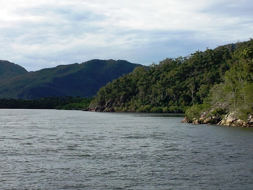 Then we headed up the incredibly scenic and lush Hinchinbrook Channel which separates mainland Australia from a myriad of small islands off the coast. The channel is lined with miles of rich mangroves and its inhabitants include crocodiles, dolphins, turtles, dugongs, giant clams and soooo much more. The twisted roots and trunks of the mangrove provide shelter and a “nursery” for plethora of baby fish and turtles. Unfortunately we only got a glimpse of a dolphin but the scenery was tranquil and lovely.