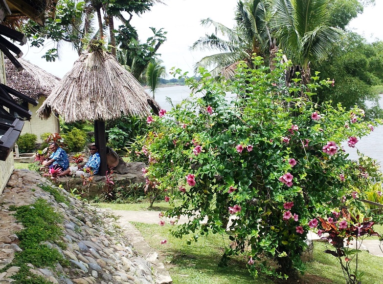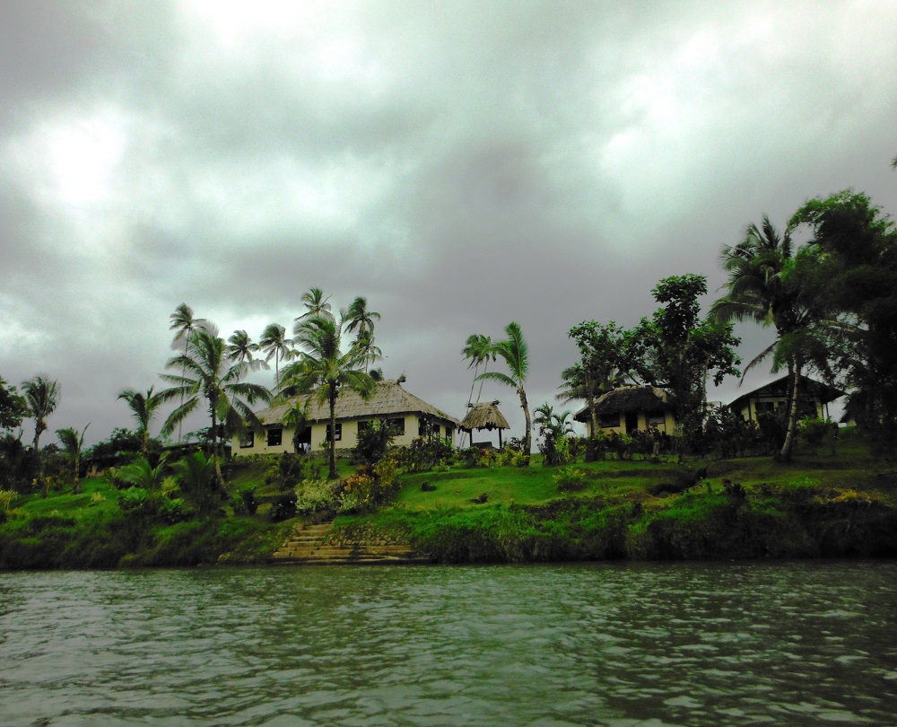 We however, did not stay in the city but opted to go on a boating excursion which turned out to be another great adventure. The group started out in buses for an hour long bus ride through the scenic countryside. We passed huts and small villages along the way, and our guide, Joe, kept up a running commentary of the history and culture of the area. The average annual income per capita in Fiji is only $5ooo, but the soil is rich and families live on what they grow, raise or catch. According to Joe, the average number of children per family is 10 – 12, yikes! The new president of Fiji is attempting to establish free public education and to require all children attend school but this is not yet the law. Joe was funny and interesting and explained what we would be seeing along the way. He talked about Kava – a plant that is grown for its roots from which they make a drink that is used in their tribal ceremonies.