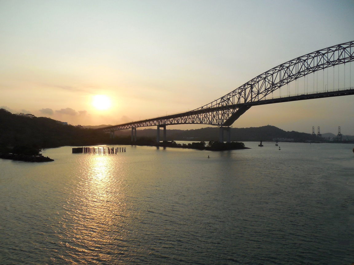 A lovely sunset view of the Bridge of the Americas as we sail into the Bay of Panama and the Pacific Ocean.