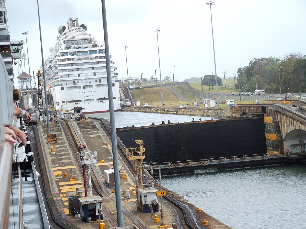 We’re about to enter the first lock with the Coral Princess just ahead in the right hand lane.