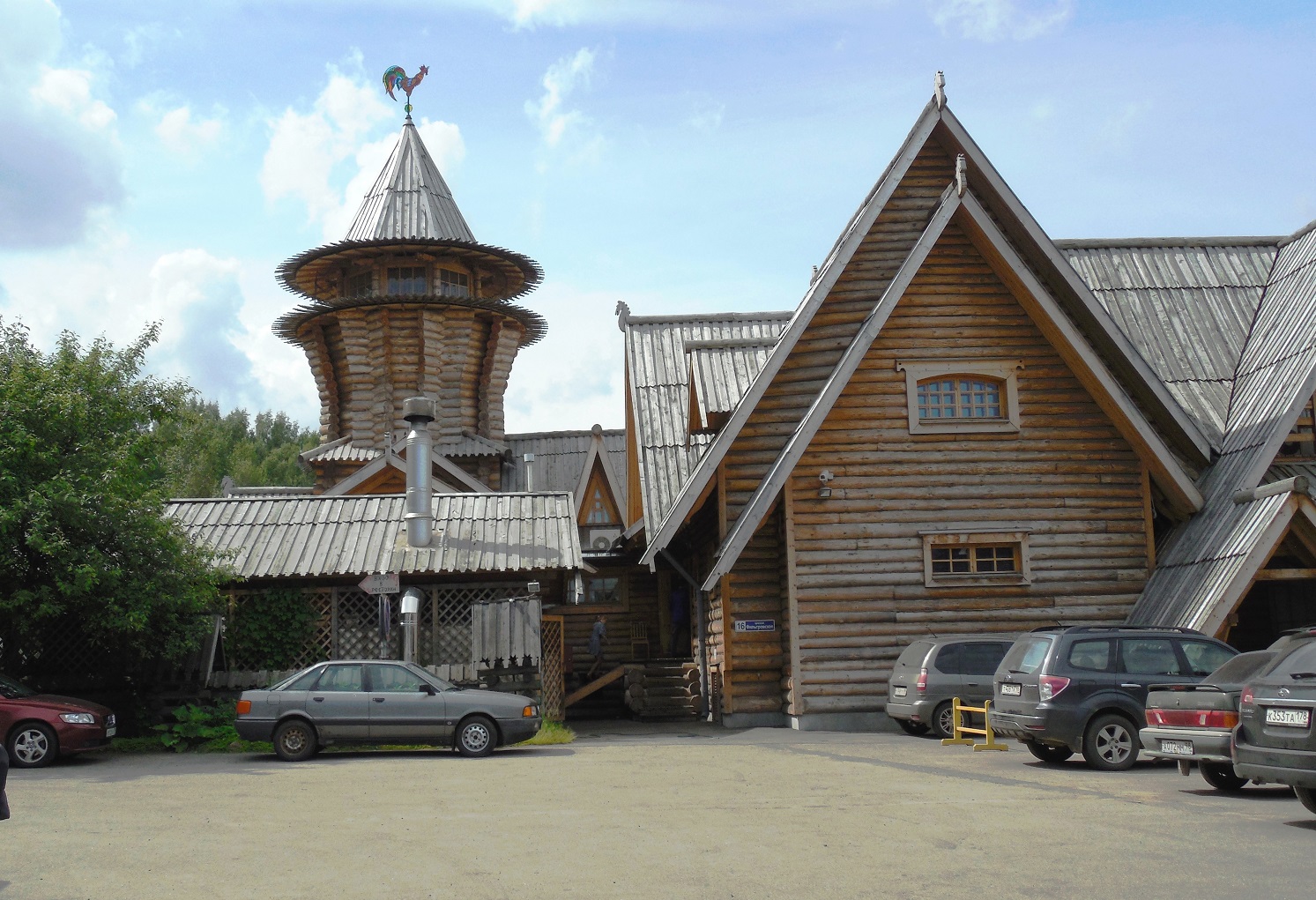 A restaurant designed in the style of a home of a wealthy Russian farmer. *Click on the picture and take a closer look at the great architecture..