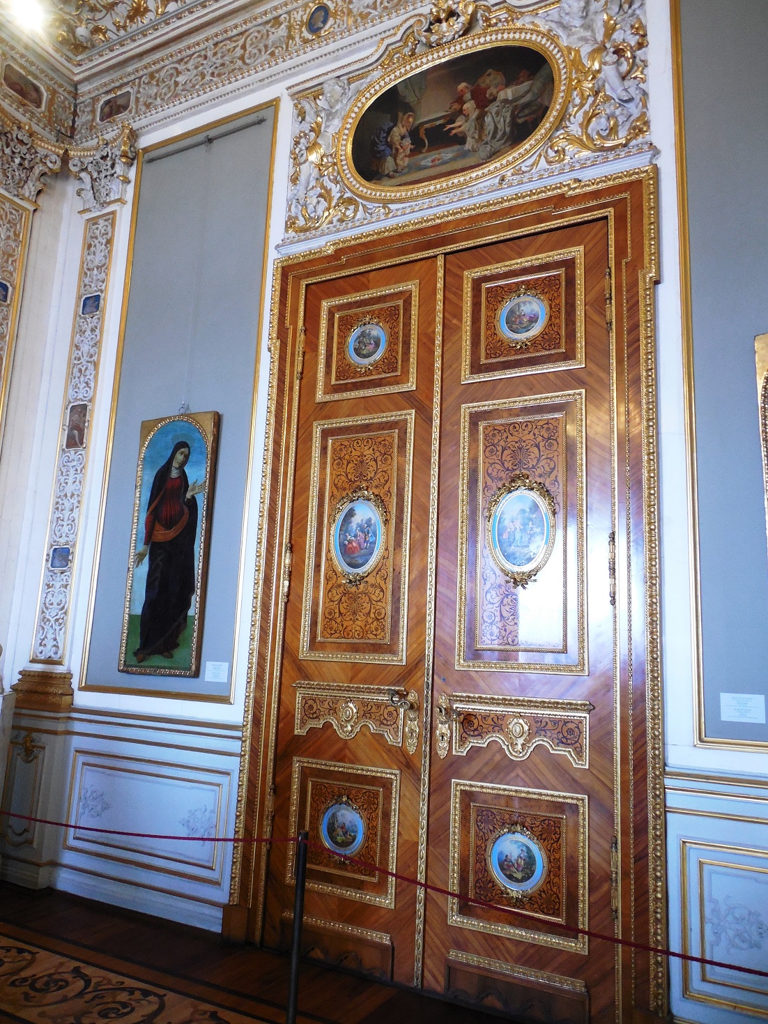 Anyway, I also mentioned Empress Elizabeth/Elizabeth-the-Spender and her dresses. Well evidently Catherine II who ruled Russia from 1762 – 1796 had her own indulgences. After ousting her husband from his position of Tzar and having him exiled (he died shortly after in an “unfortunate hunting accident”), Catherine took over as the Russian Ruler and began collecting lovers, hmmm. Word is that she had a great many and that she promoted her “favorites” to high ranking positions over her 34 year reign (just a bit of interesting trivia to spice up the tour).