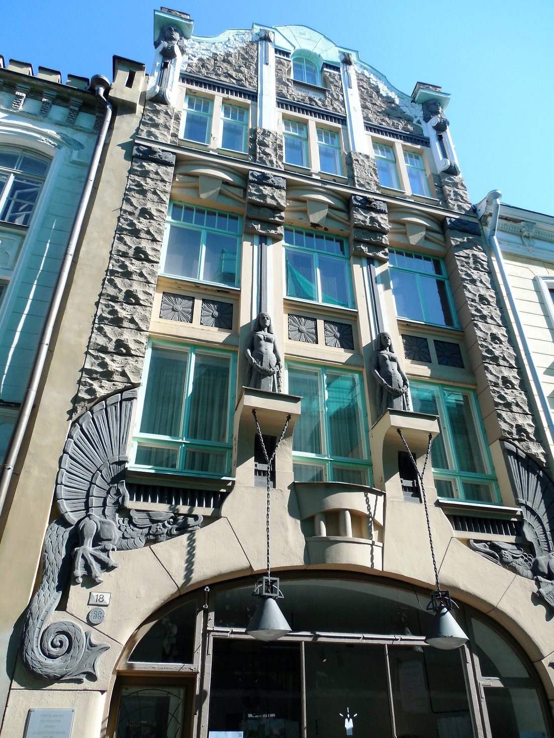 The next morning we were off again, this time to the Art Nouveau District of Riga. It was explained that after the stark severity of the forced Stalinist housing, this was Latvia’s celebration of independence. What we found was one gorgeous building after another. Being the architecture lover that I am, I was in heaven!