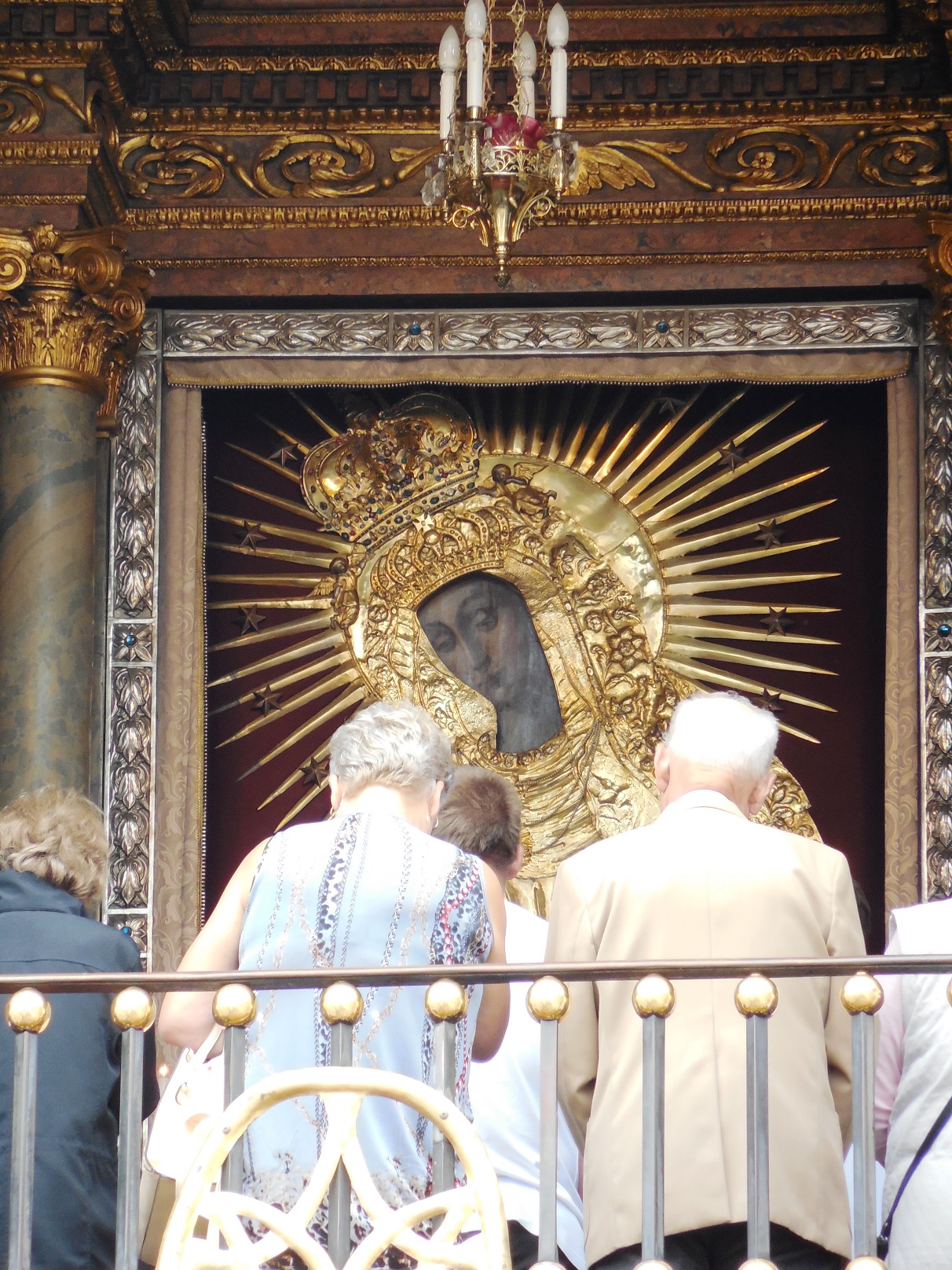 The main gate into the old walled city. The Chapel of the Blessed Mary Catholic Church occupies the building, and there was a service being held as we walked below.The famous Black Madonna is here. Not really black, the Madonna is carved of dark oak.